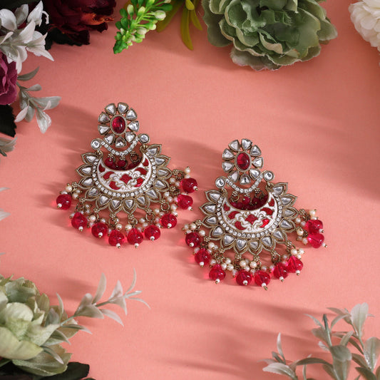 Maroon Color Meena Work Kundan Earrings (KDE1022MRN)