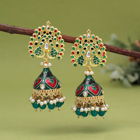 Green Color Meena Work Kundan Earrings (KDE1022GRN)