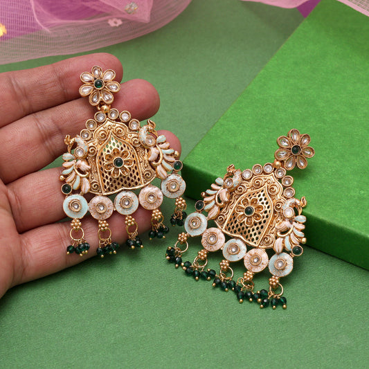 MKE1989GRN   Sold out Sold outGreen Color Meenakari EarringsRegular price ₹383.00 INRRegular priceUnit price / per₹510.00 INRSale price ₹383.00 INRSold out