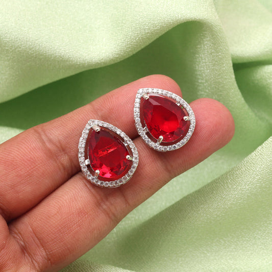 Maroon Color American Diamond Earrings (ADE584MRN)