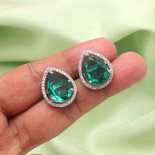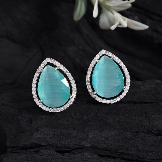 Firozi Color American Diamond Earrings (ADE584FRZ)