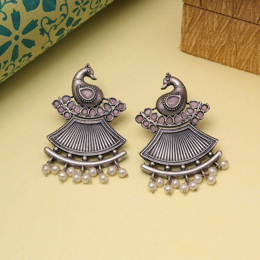 Pink Color Oxidised Fashion Earrings For Vibrant And Bold Festival Styling