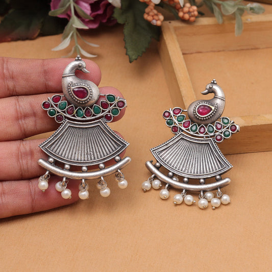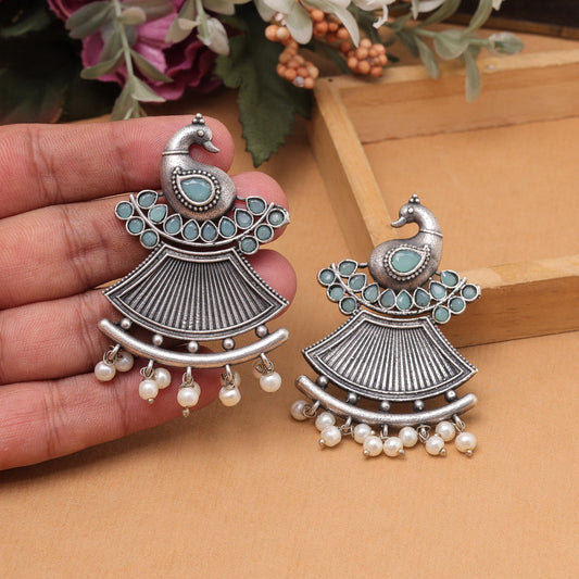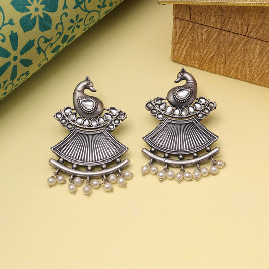 Silver Color Oxidised Fashion Earrings With Royal Antique Styling Patterns