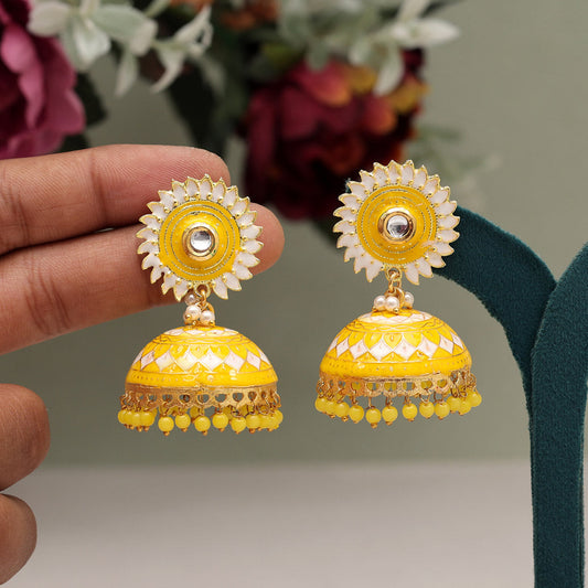 Yellow Color Meenakari Earrings (MKE1980YLW)