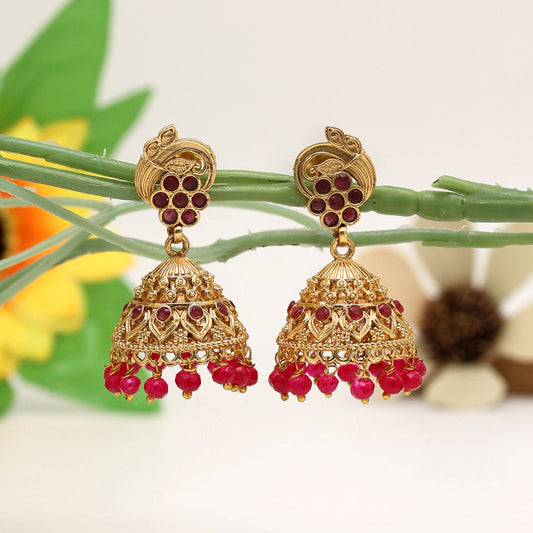 Rani Color Rajwadi Matte Gold Earrings (MGE308RNI)