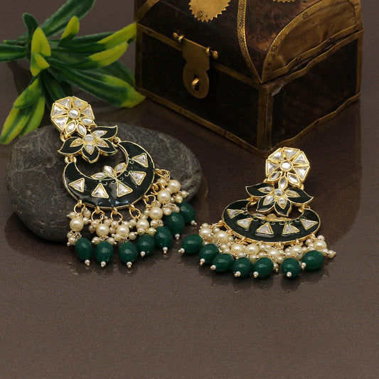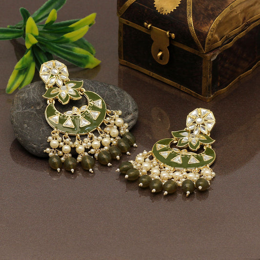 Mehandi Green Color Meenakari Earrings (MKE1764MGRN)