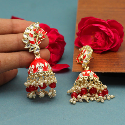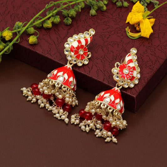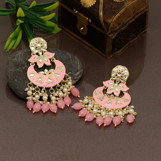 Pink Color Meenakari Earrings (MKE1775PNK)