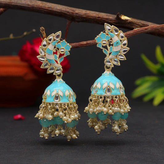 Firozi Color Meenakari Earrings (MKE1762FRZ)