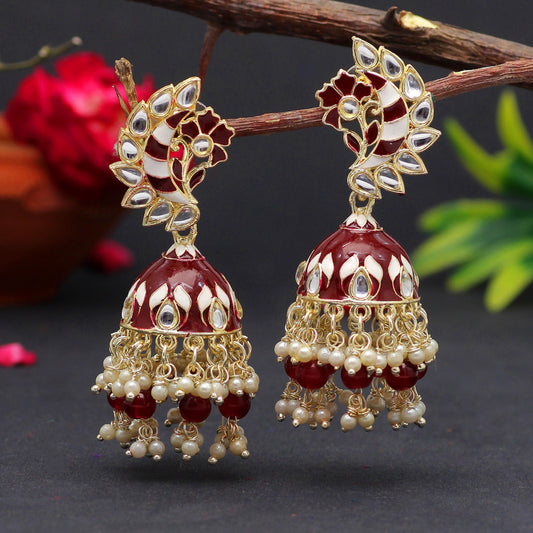 Maroon Color Meenakari Earrings (MKE1778MRN)