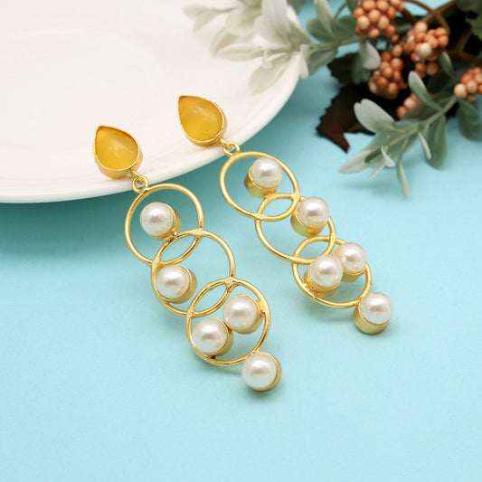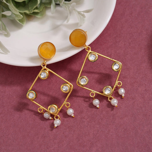 Yellow Color Mother Of Pearl Kundan Earrings (KDE973YLW)
