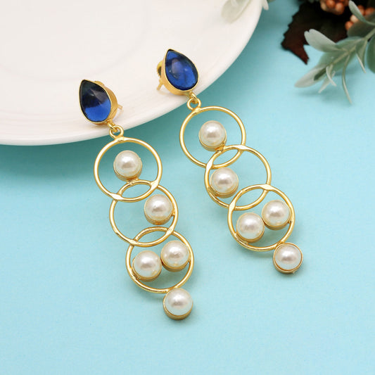 Blue Color Mother Of Pearl Kundan Earrings (KDE973BLU)