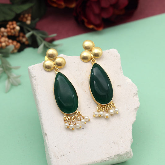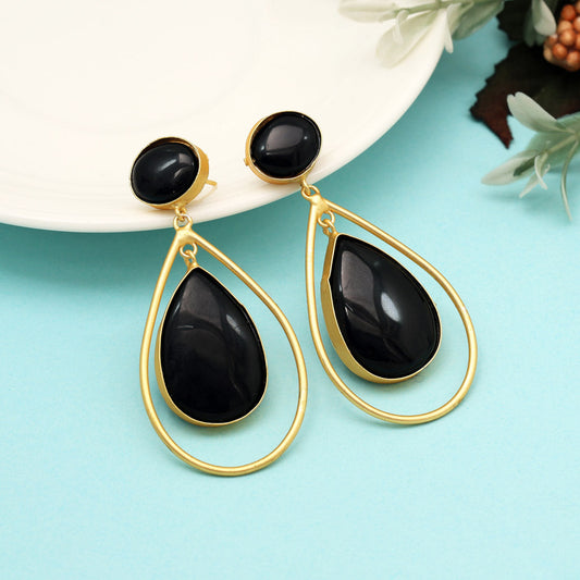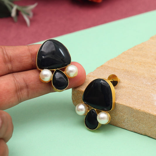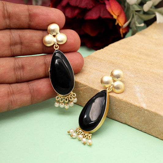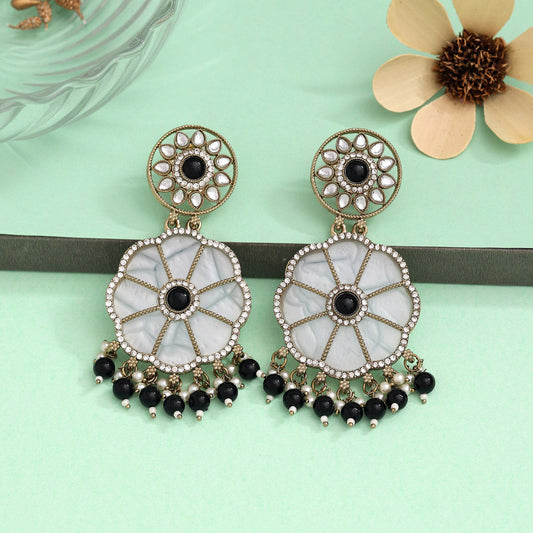 Black Color Mother Of Pearl Kundan Earrings (KDE973BLK)