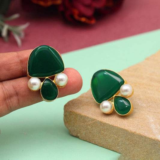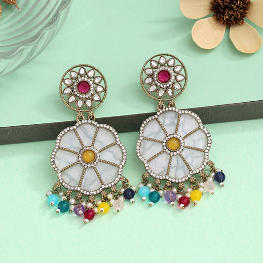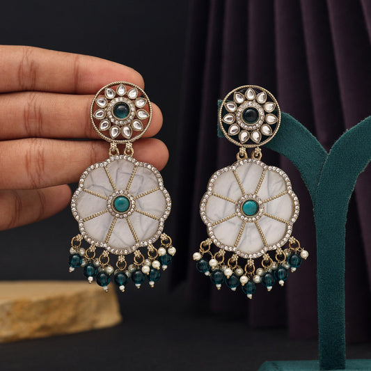 Turquoise Blue Color Mother Of Pearl Kundan Earrings