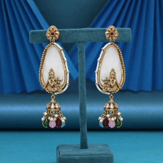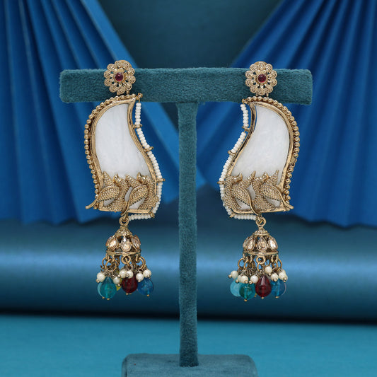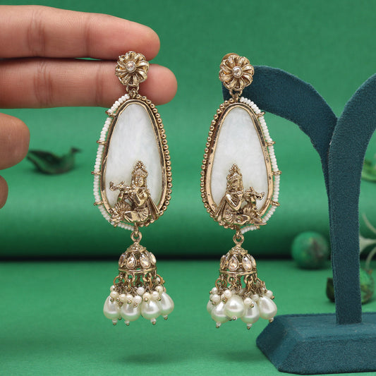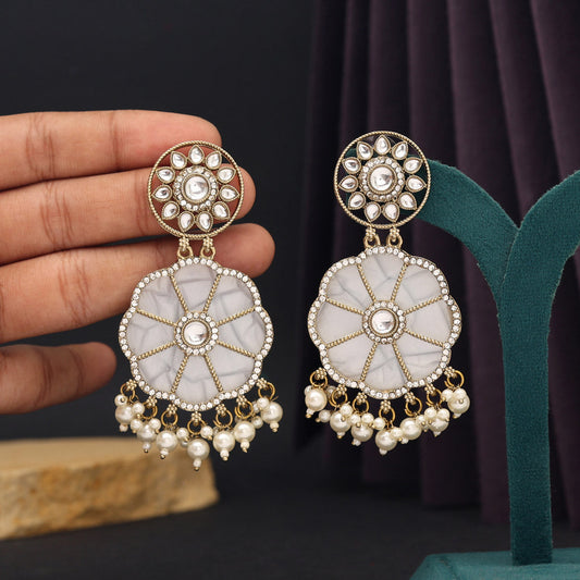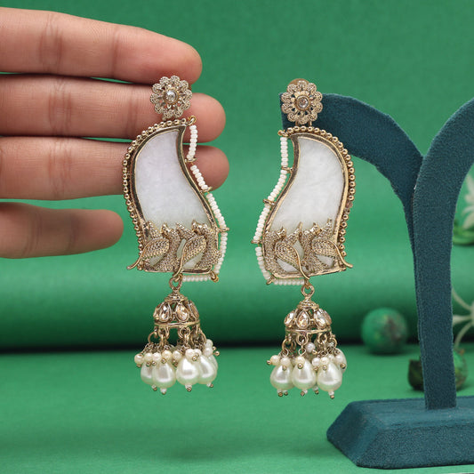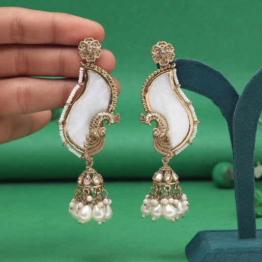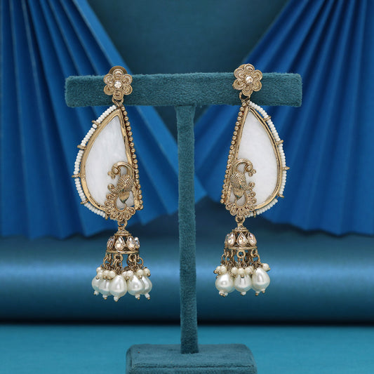 White Color Mother Of Pearl Kundan Earrings (KDE973WHT)