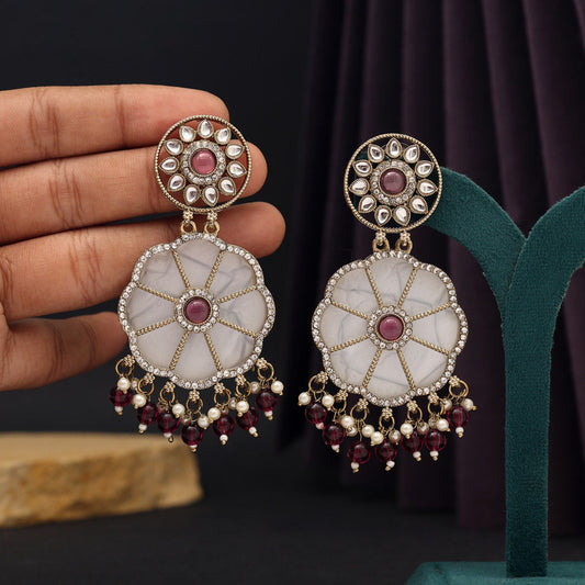 Magenta Color Mother Of Pearl Kundan Earrings (KDE973MNT)