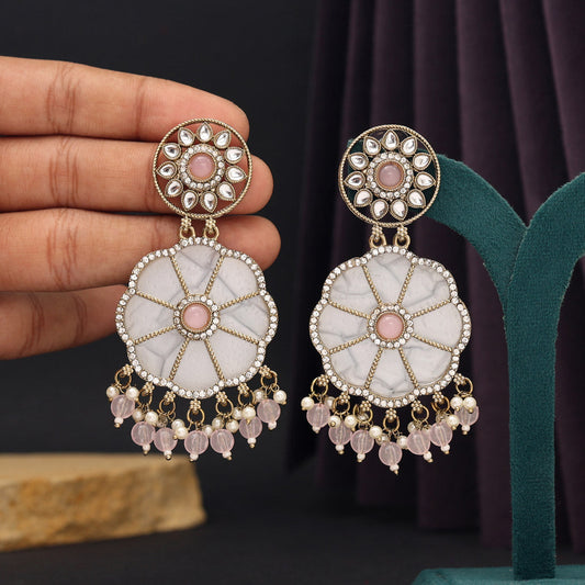 Pink Color Mother Of Pearl Kundan Earrings (KDE973PNK)
