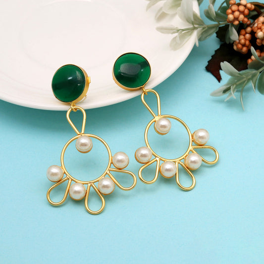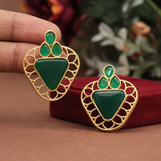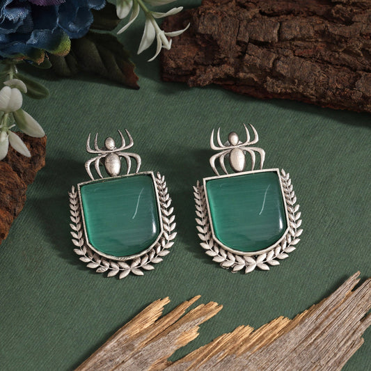 Green Color Oxidised Earrings In Lightweight Traditional Jewelry Design