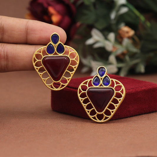 Maroon & Blue Color Amrapali Earrings (AMPE407MRNBLU)