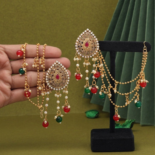 Maroon & Green Color Bahubali Earrings (BBLE449MG)