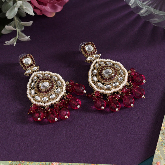 Magenta Color Kundan Earrings (KDE1018MNT)