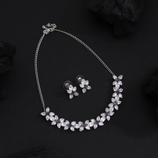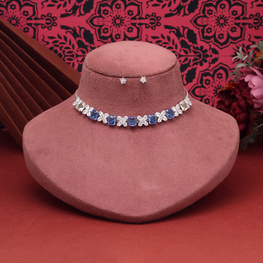 Navy Blue Color Stone Necklace Set (STN207NBLU)