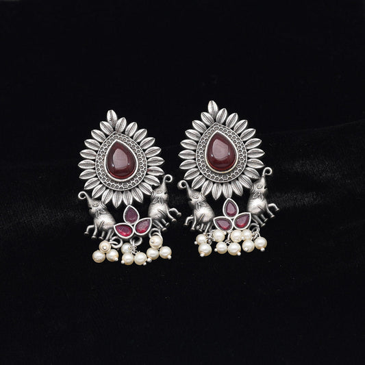 Maroon Color Oxidised Earrings For Weddings And Traditional Ethnic Wear