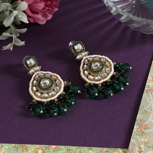 Green Color Kundan Earrings (KDE1018GRN)