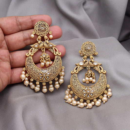 Gold Color Rajwadi Matte Gold Earrings (MGE331GLD)