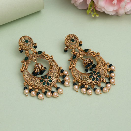 Green Color Rajwadi Matte Gold Earrings (MGE331GRN)