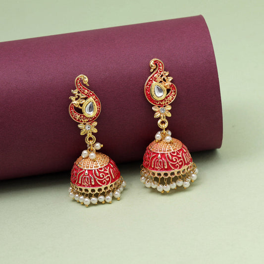 Red Color Meenakari Earrings (MKE1692RED)