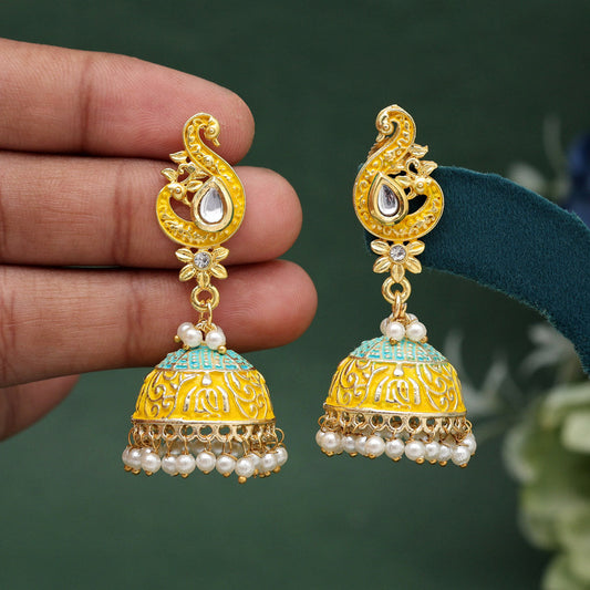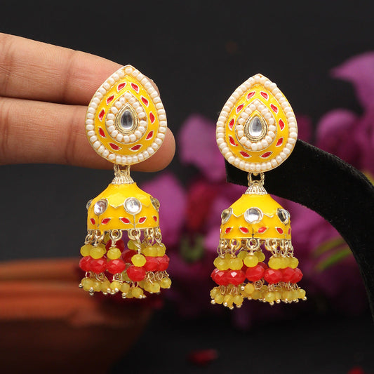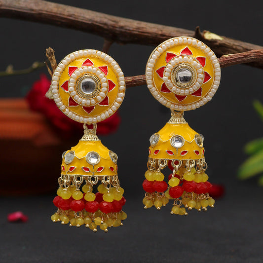 Yellow Color Meenakari Earrings (MKE1774YLW)