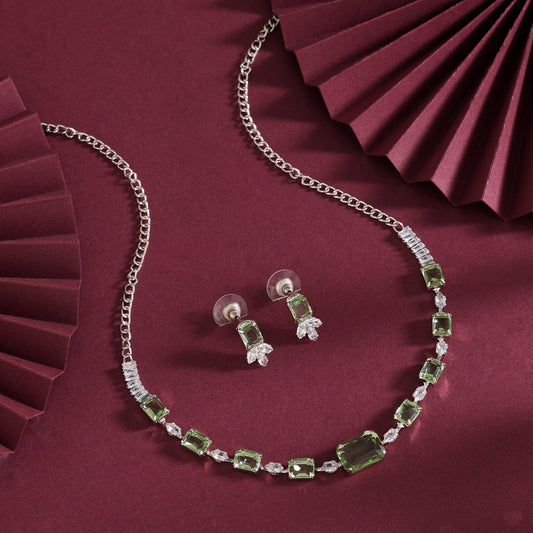 Sold outLight Green Color Stone Necklace Set