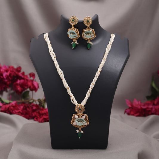 Sold outPista Green Color Stone Necklace Set