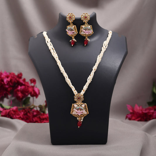 Gold Color Meena Work Matte Gold Rajwadi Temple Necklace Set