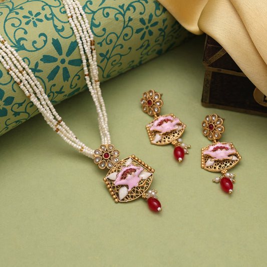 Sold outLight Pink Color Stone Necklace Set