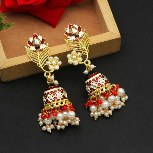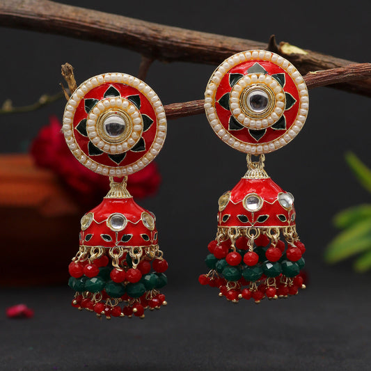 Red Color Meenakari Earrings (MKE1773RED)