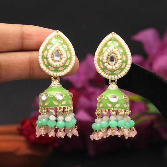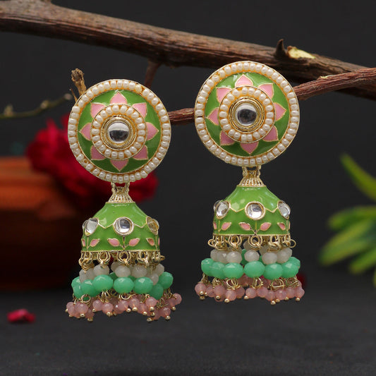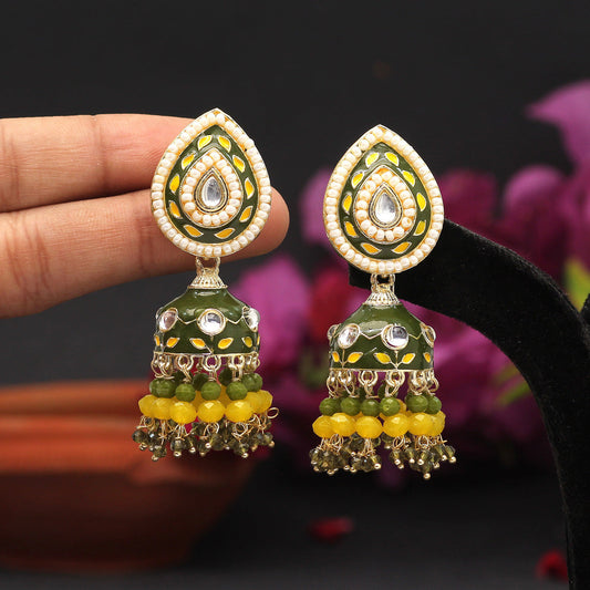 Green Color Meenakari Earrings (MKE1774GRN)
