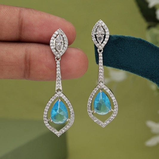 Firozi Color American Diamond Earrings (ADE567FRZ)