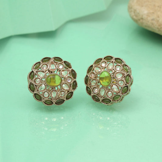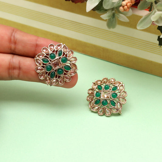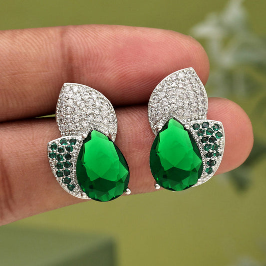 Rama Green Color American Diamond Earrings (ADE567RGRN)