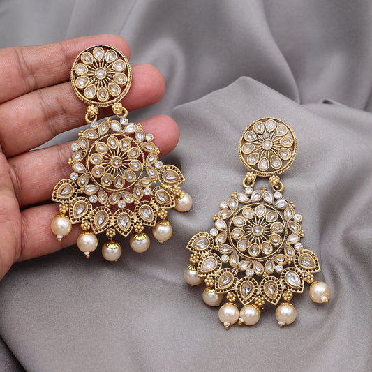 Gold Color Rajwadi Matte Gold Earrings (MGE328GLD)