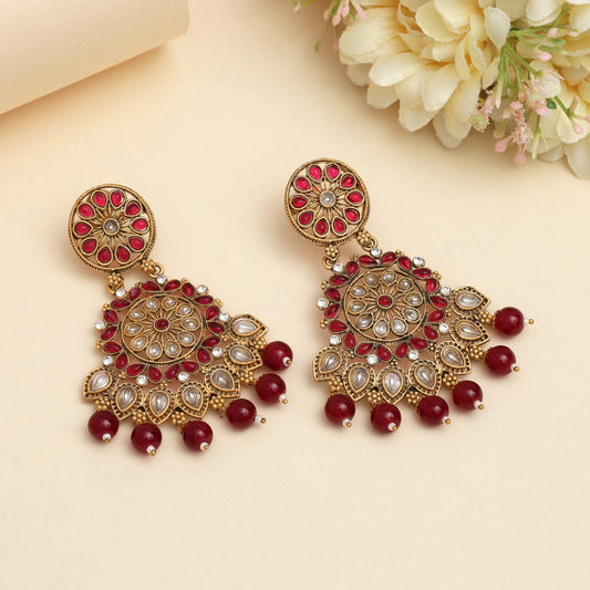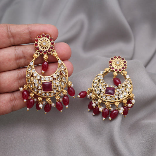 Maroon Color Rajwadi Matte Gold Earrings (MGE328MRN)