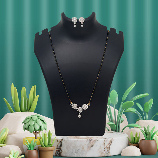 Silver Color American Diamond Mangalsutra With Earrings (MS360SLV)