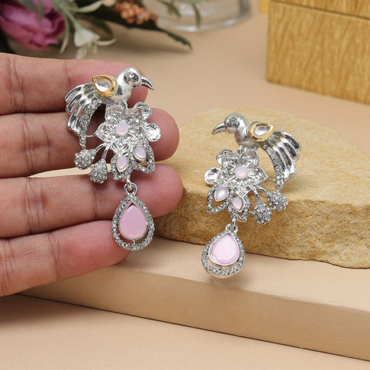Pink Color Fashion Earrings In Layered Design With Elegant Look