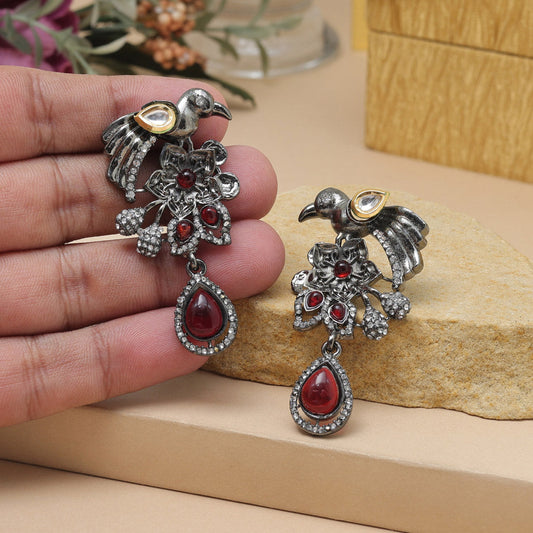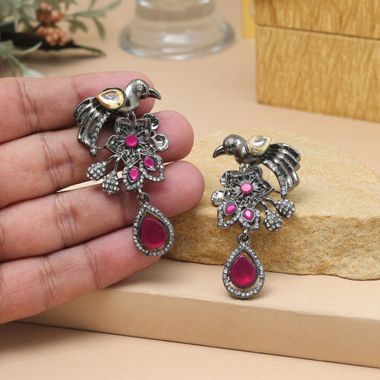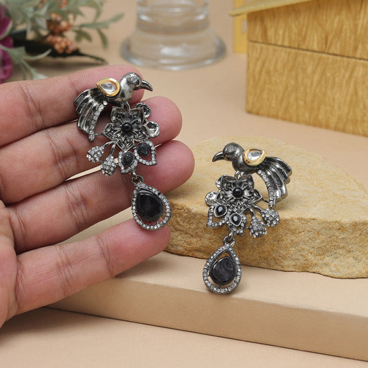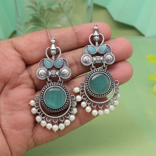 Silver Color Oxidised Studded Traditional Look Handmade Fashion Earrings