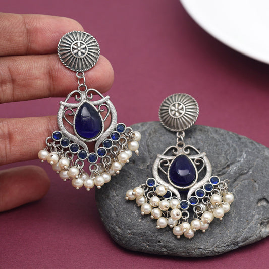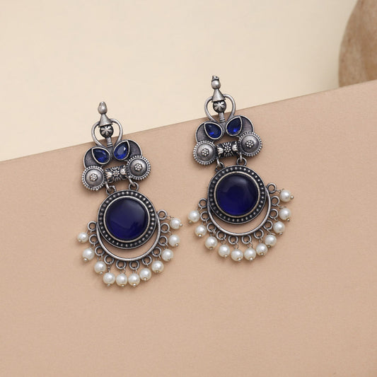 Royal Blue Color Oxidised Earrings For Ethnic Statement Appearance