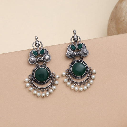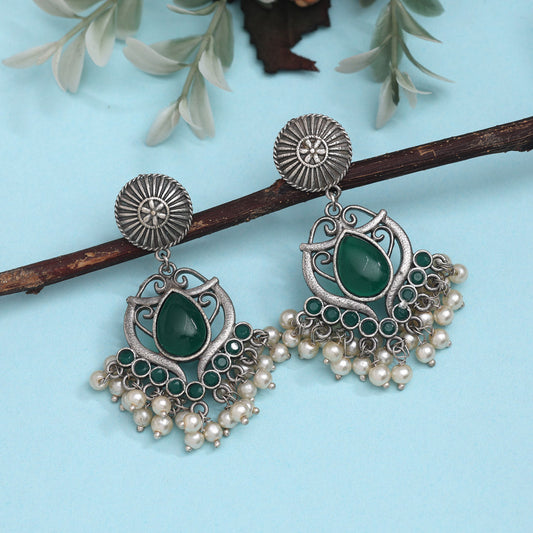 Rama Green Color Oxidised Earrings For Ethnic And Indo-Western Wear
