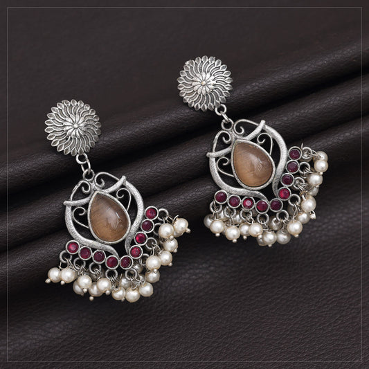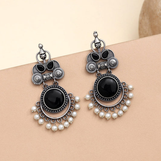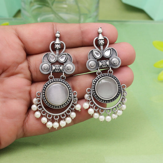 Elegant Off White Color Oxidised Earrings With Delicate Pearl Detailing