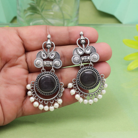 Sophisticated Grey Color Oxidised Earrings For Subtle Fashion Lovers