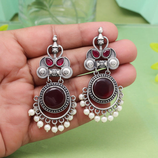 Deep Maroon Color Oxidised Earrings For Lehenga And Saree Styles