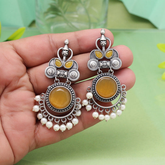 Mustard Yellow Color Oxidised Earrings To Match Vibrant Festive Attire